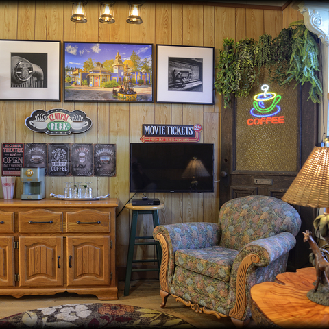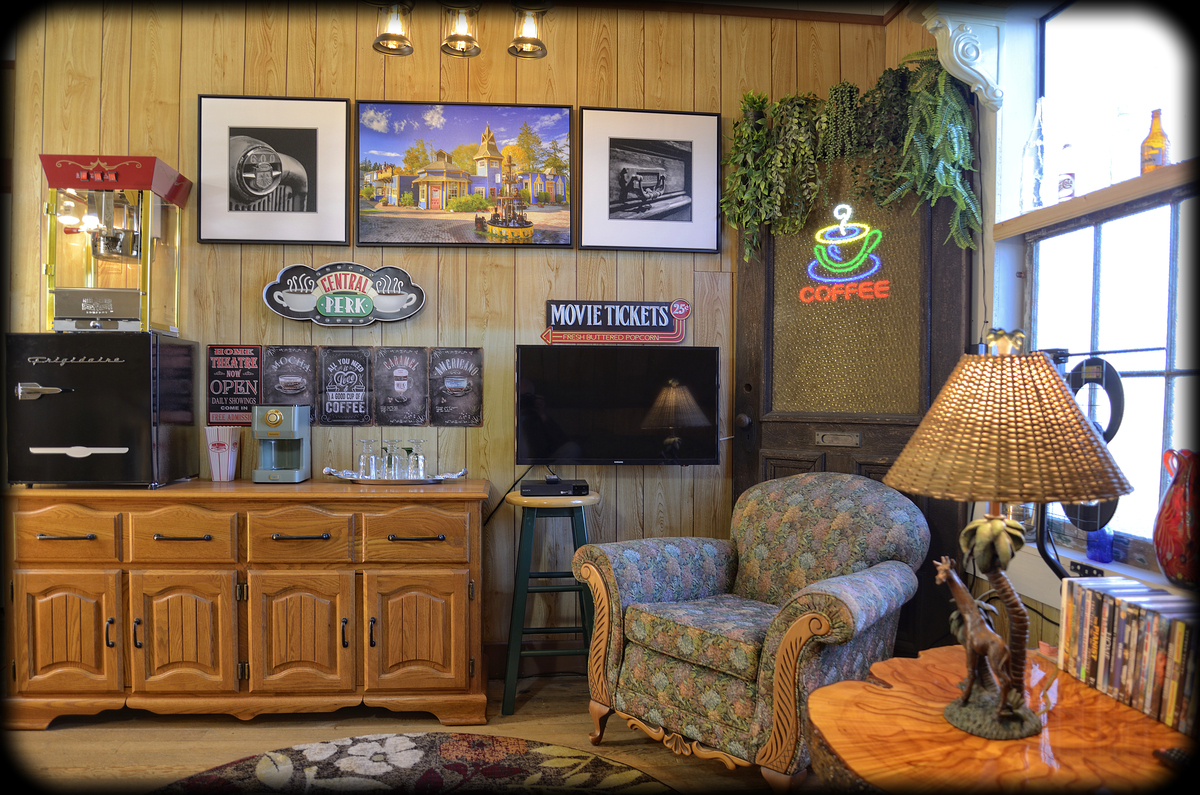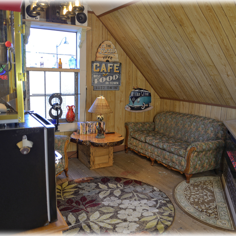 The coffee lounge has a vintage rustic decor that is relaxing and full of character